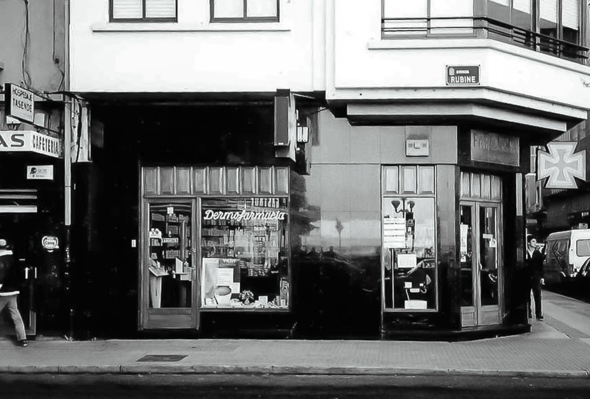 En los años de recuperación de la postguerra, Don Teófilo Batallan Pena adquiere la farmacia en Avenida Rubine 35 esquina Calle Comandante Barja que llevaba unos meses abierta.